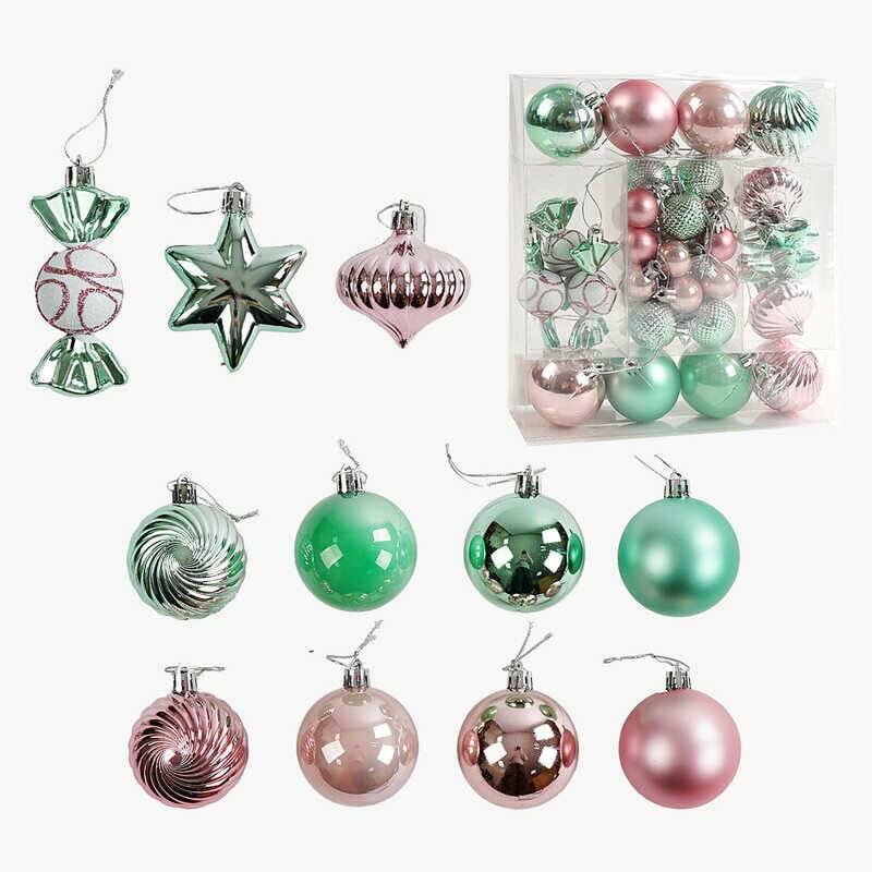 Новорічні прикраси C 67536 (40) 36 штук, кульки, цукерки, бурульки, зірочки, у слюді