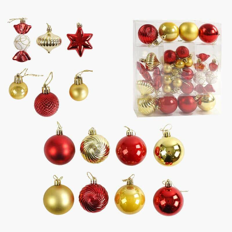 Новорічні прикраси C 67538 (40) 36 штук, кульки, цукерки, бурульки, зірочки, у слюді