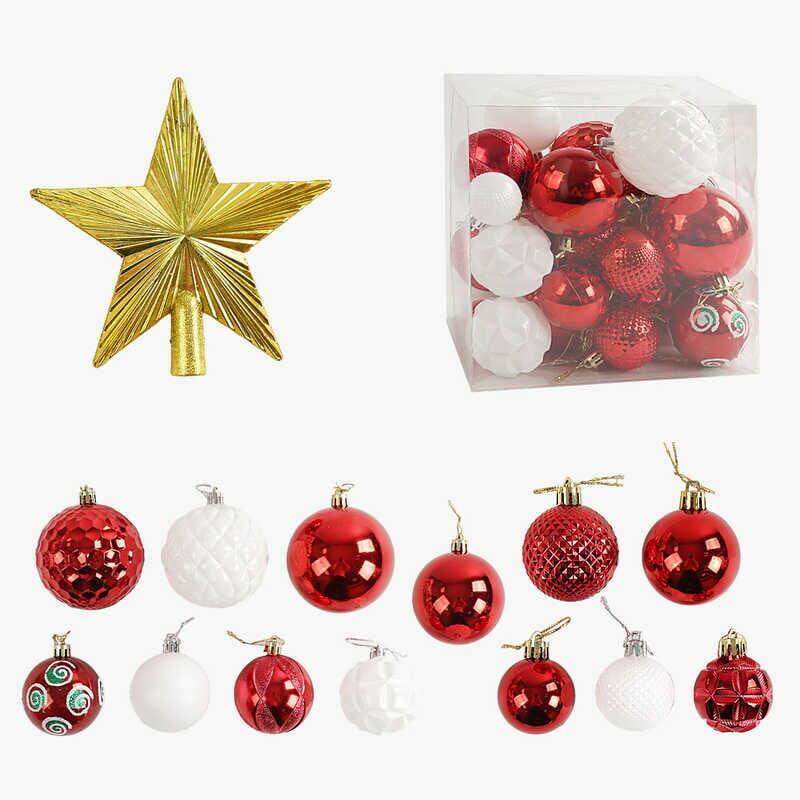 Новорічні прикраси C 67553 (24) 30 штук, кульки, зірочка-верхівка, у слюді