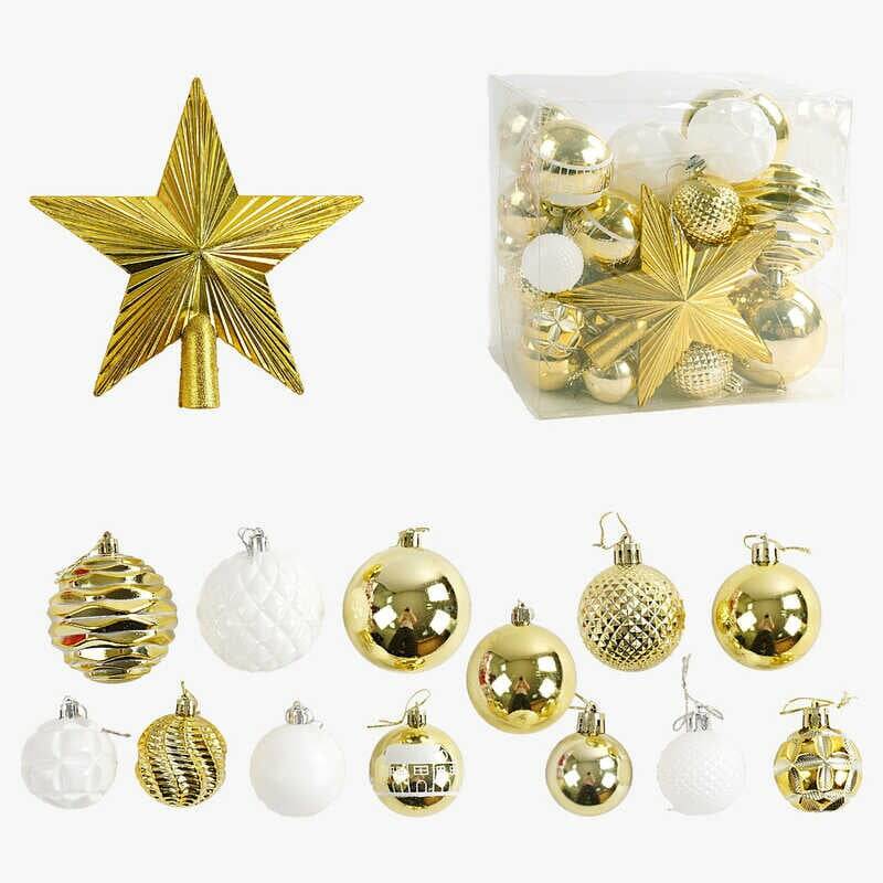 Новорічні прикраси C 67554 (24) 30 штук, кульки, зірочка-верхівка, у слюді