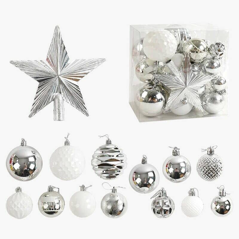 Новорічні прикраси C 67558 (24) 30 штук, кульки, зірочка-верхівка, у слюді