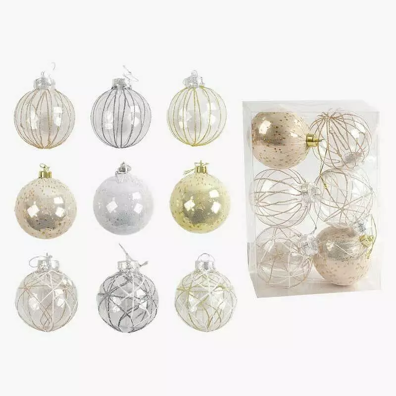 Новорічні прикраси C 67575 (64) 3 кольори, кульки, 6 штук, D=8 см, у слюді, ВИДАЄТЬСЯ ТІЛЬКИ МІКС ВИДІВ
