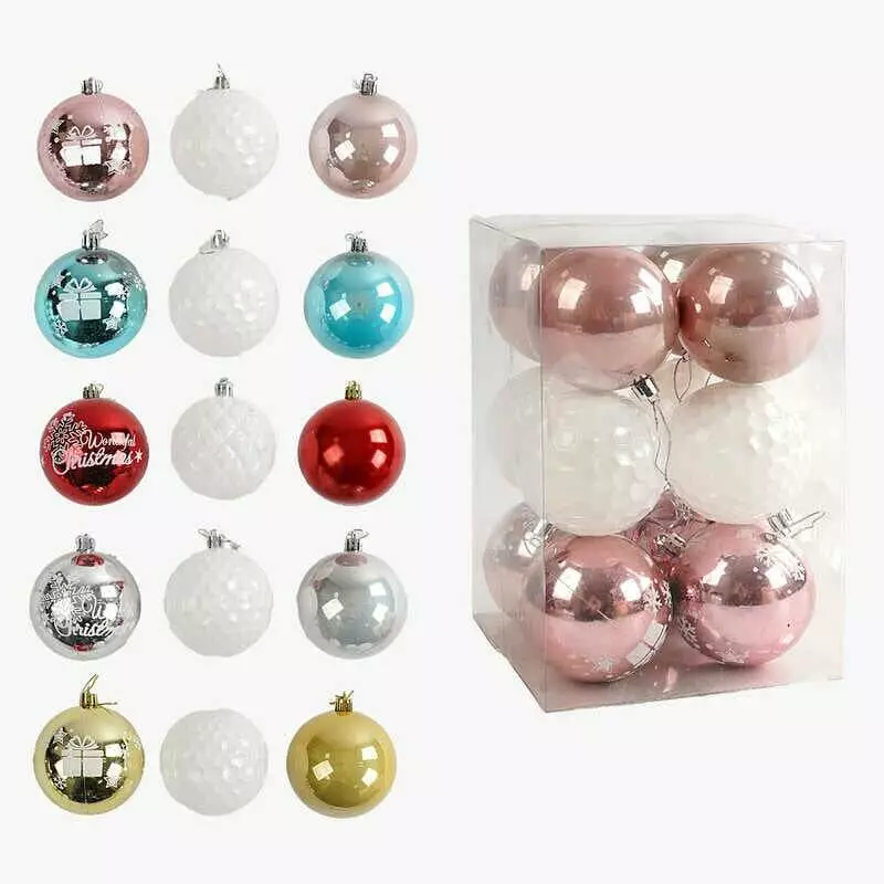Новорічні прикраси C 67577 (32) 5 видів, 12 штук, кульки, D = 7 см, ВИДАЄТЬСЯ МІКС ВИДІВ, у слюді