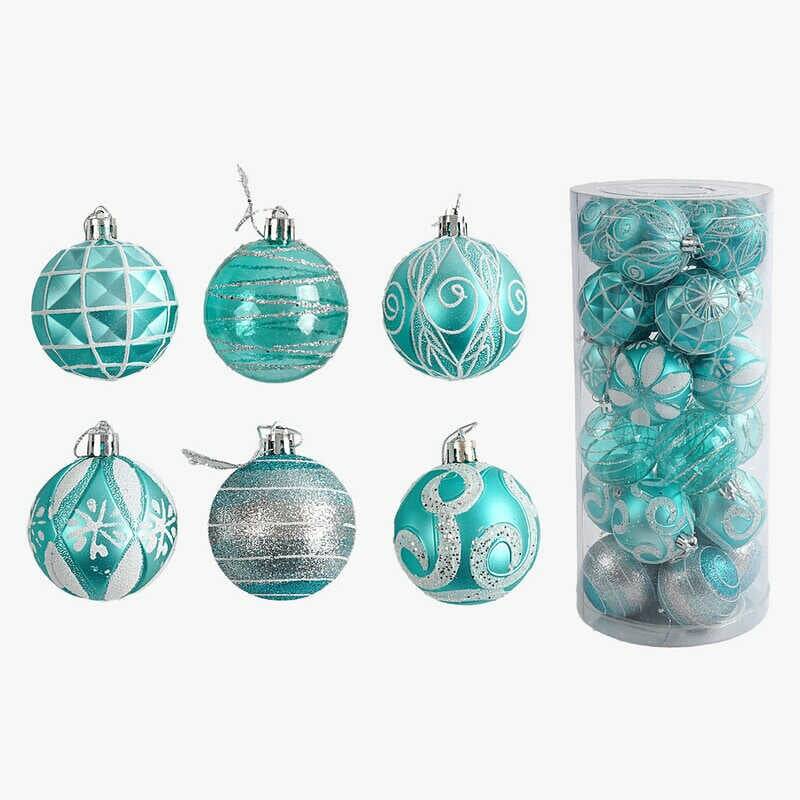 Новорічні прикраси C 67620 (32) 24 штуки, кульки, D = 6 см, у слюді