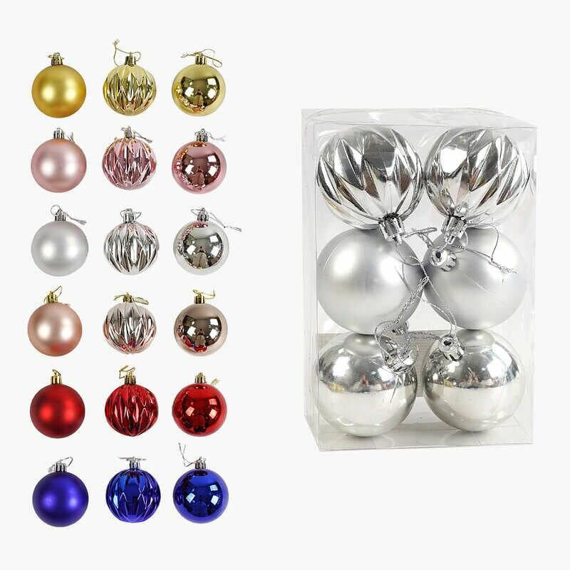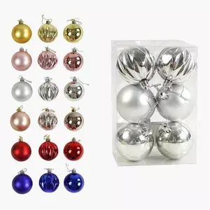 Новорічні прикраси C 67648 (120) 6 штук, кульки, D = 5,5 см, у слюді, ВИДАЄТЬСЯ МІКС ВИДІВ