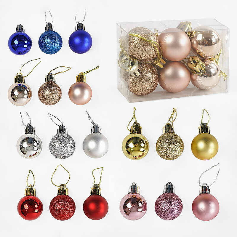 Новорічні прикраси C 67650 (900) 6 видів, кульки, D=3 см, у слюді, ВИДАЄТЬСЯ МІКС ВИДІВ