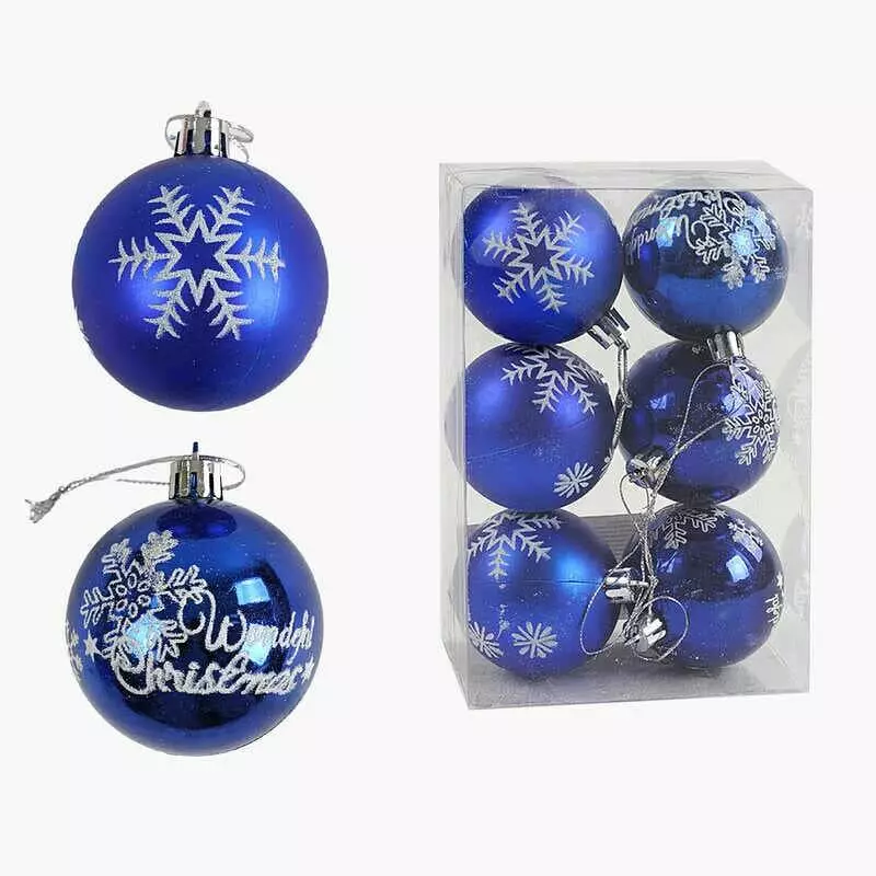 Новорічні прикраси C 67666 (120) 6 штук, кульки, D = 5,5 см, у слюді