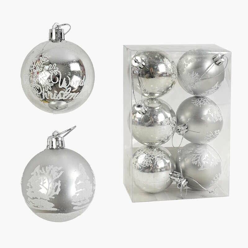 Новорічні прикраси C 67668 (120) 6 штук, кульки, D = 5,5 см, у слюді