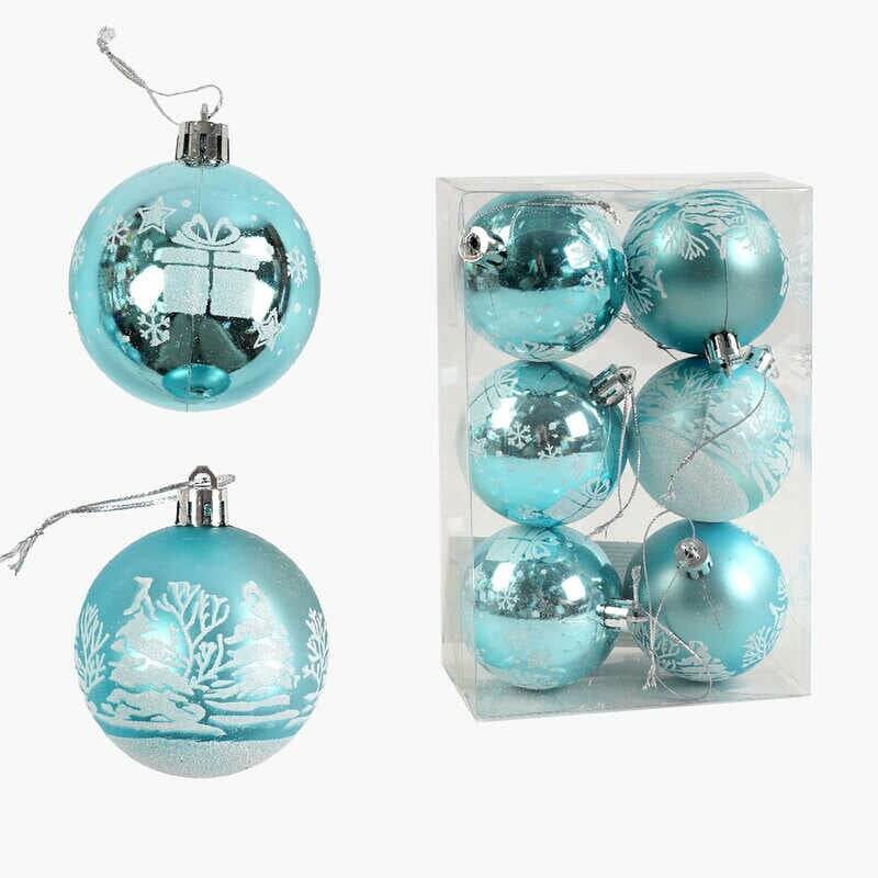 Новорічні прикраси C 67669 (120) 6 штук, кульки, D = 5,5 см, у слюді