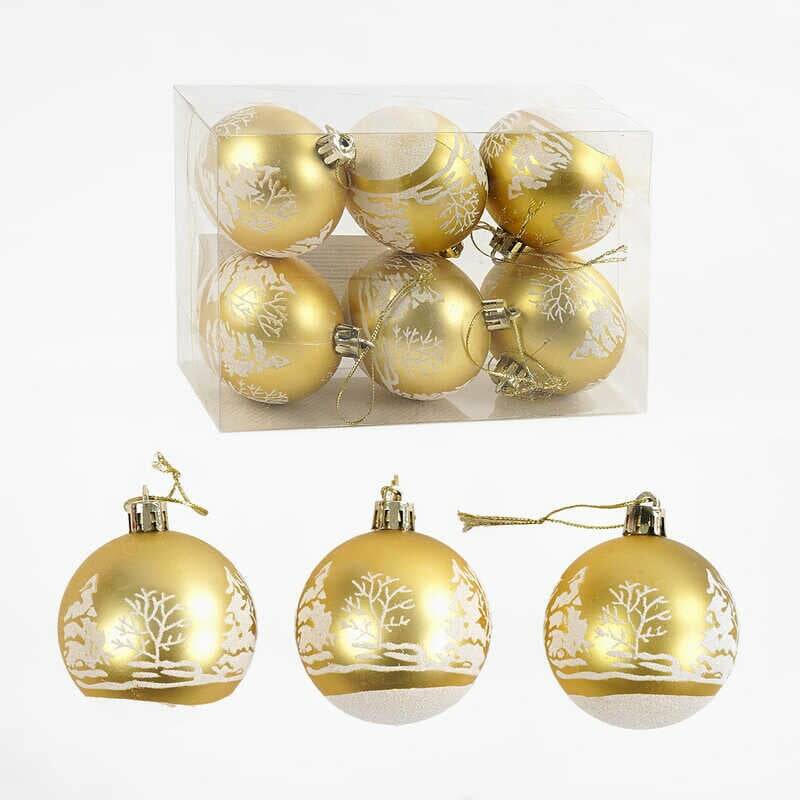 Новорічні прикраси C 67673 (120) 6 штук, кульки, D=6 см, у слюді