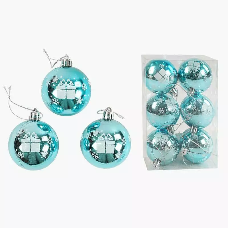 Новорічні прикраси C 67678 (120) 6 штук, кульки, D = 5,5 см, у слюді