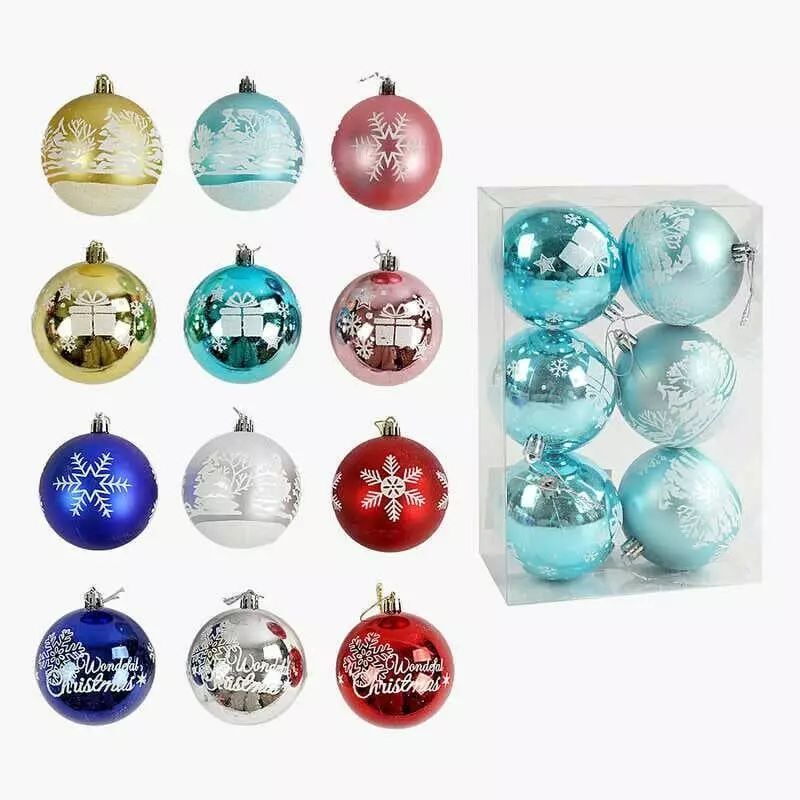 Новорічні прикраси C 67679 (64) 6 штук, кульки, D = 7,5 см, у слюді, ВИДАЄТЬСЯ ТІЛЬКИ МІКС ВИДІВ