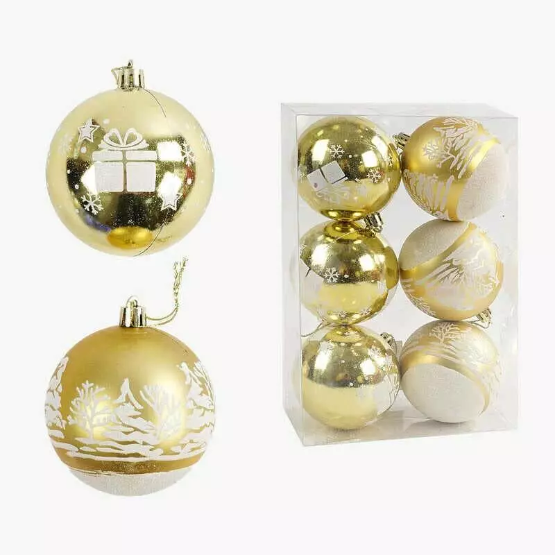 Новорічні прикраси C 67680 (64) 6 штук, кульки, D = 7,5 см, у слюді