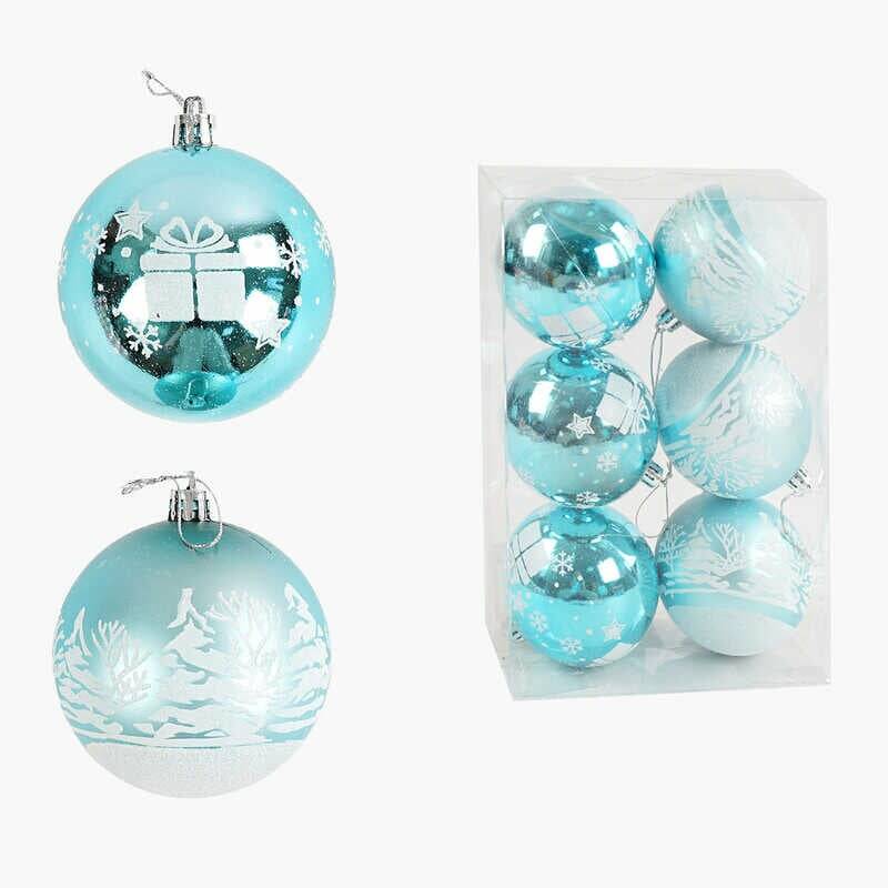 Новорічні прикраси C 67685 (64) 6 штук, кульки, D = 7,5 см, у слюді