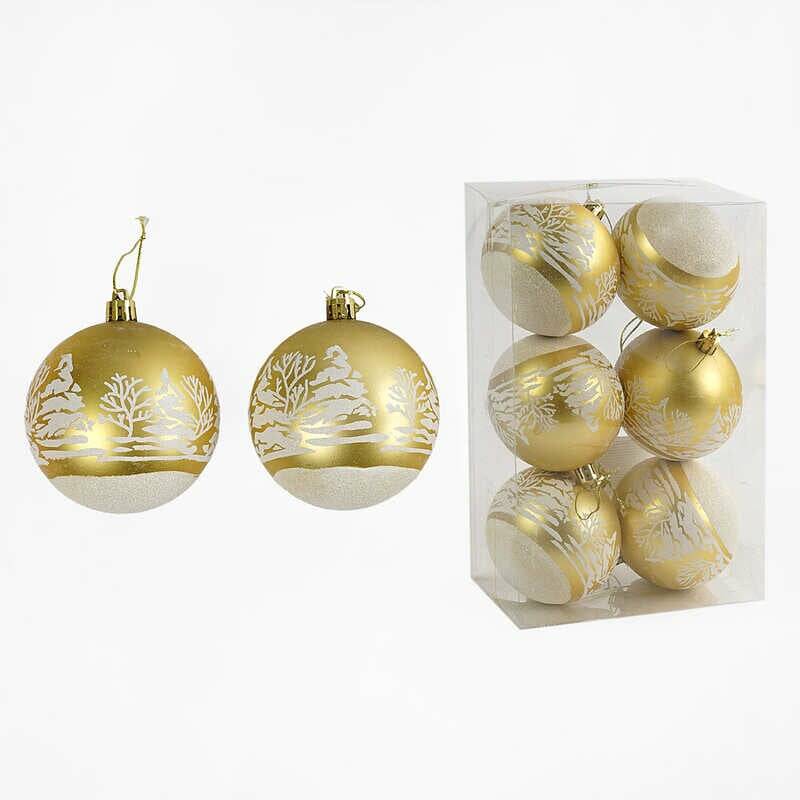 Новорічні прикраси C 67689 (64) 6 штук, кульки, D=8 см, у слюді