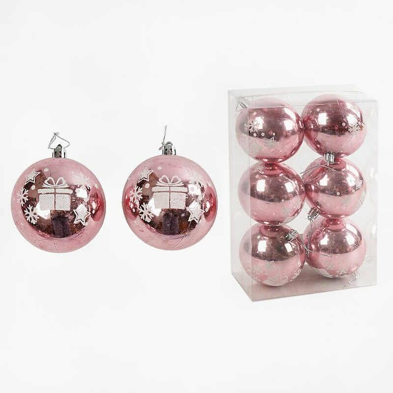 Новорічні прикраси C 67690 (64) 6 штук, кульки, D=8 см, у слюді