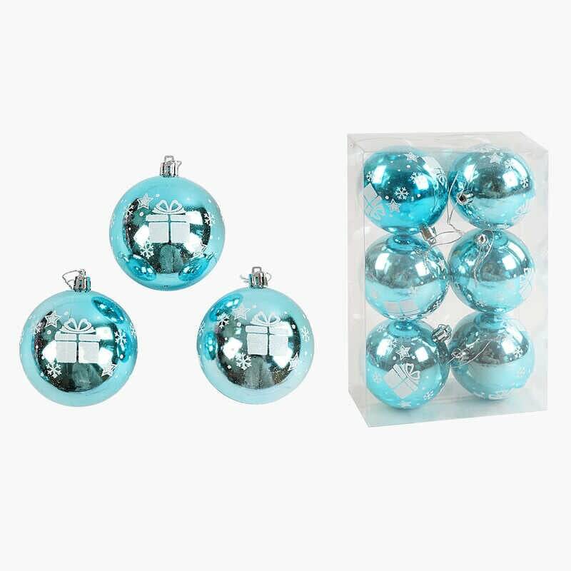 Новорічні прикраси C 67694 (64) 6 штук, кульки, D = 7,5 см, у слюді