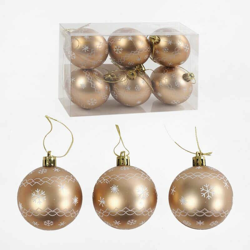 Новорічні прикраси C 67701 (120) 6 штук, кульки, D=6 см, у слюді