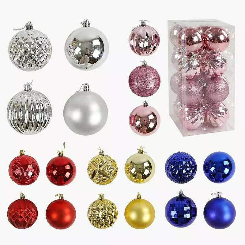 Новорічні прикраси C 67704 (24) 5 видів, кульки, 16 штук, D = 8 см, в слюді, ВИДАЄТЬСЯ ТІЛЬКИ МІКС ВИДІВ