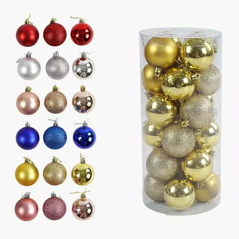 Новорічні прикраси C 67711 (32) 6 видів, кульки, 24 штуки, D = 6 см, в слюді, ВИДАЄТЬСЯ ТІЛЬКИ МІКС ВИДІВ