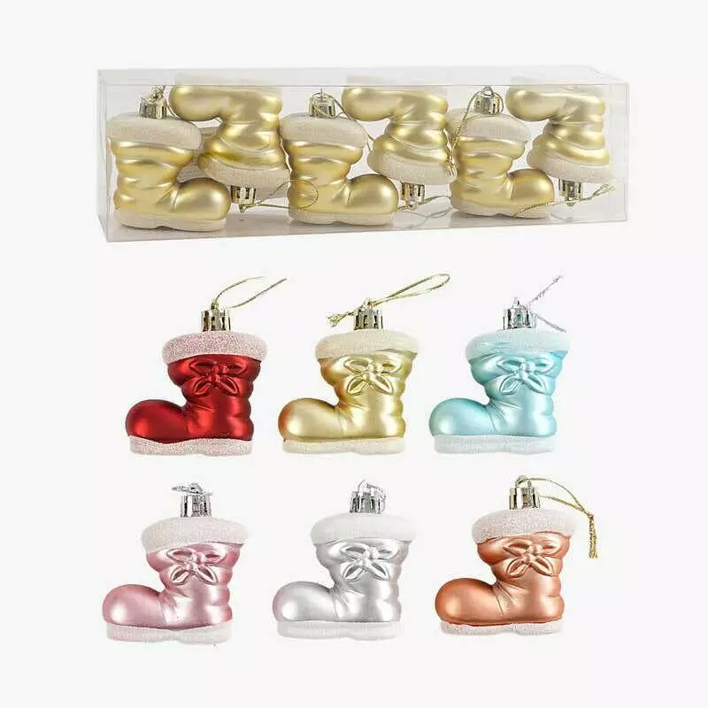 Новорічні прикраси C 67718 (120) 6 штук, чобітки, висота 5 см, у слюді, ВИДАЄТЬСЯ ТІЛЬКИ МІКС ВИДІВ