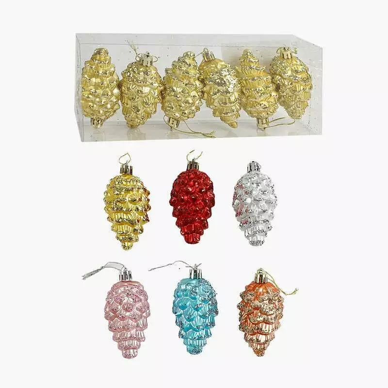 Новорічні прикраси C 67719 (96) 6 штук, шишки, висота 8 см, у слюді, ВИДАЄТЬСЯ ТІЛЬКИ МІКС ВИДІВ