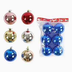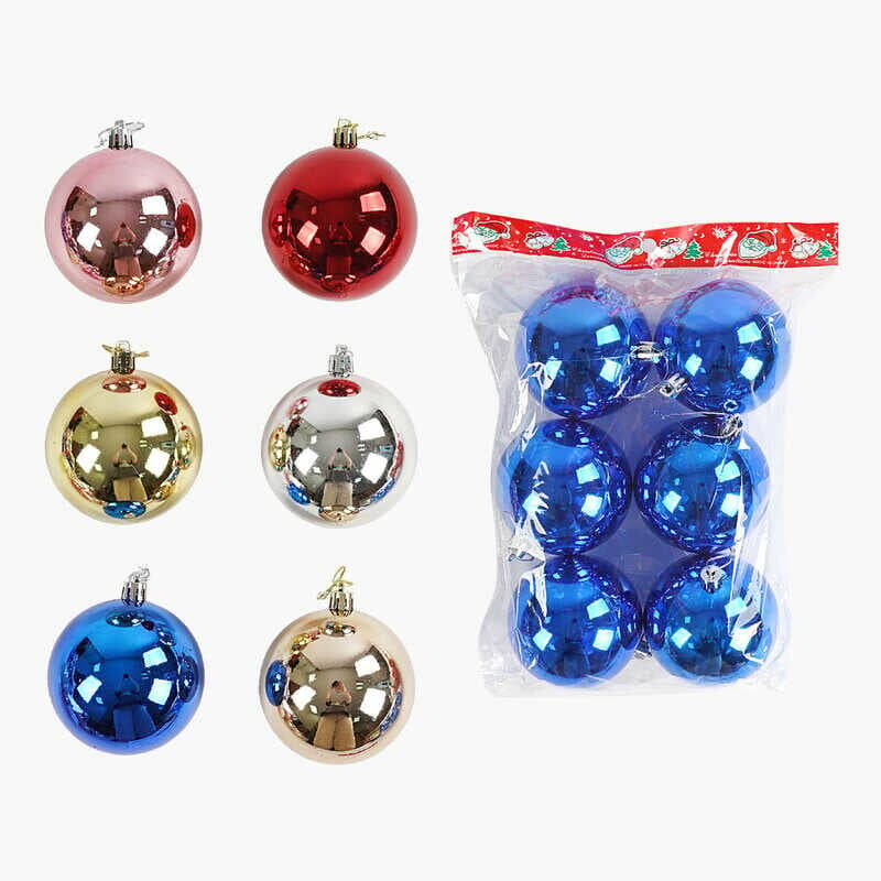 Новорічні прикраси C 67734 (72) 6 видів, кульки, 6 штук, D=8 см, у пакеті, ВИДАЄТЬСЯ МІКС ВИДІВ