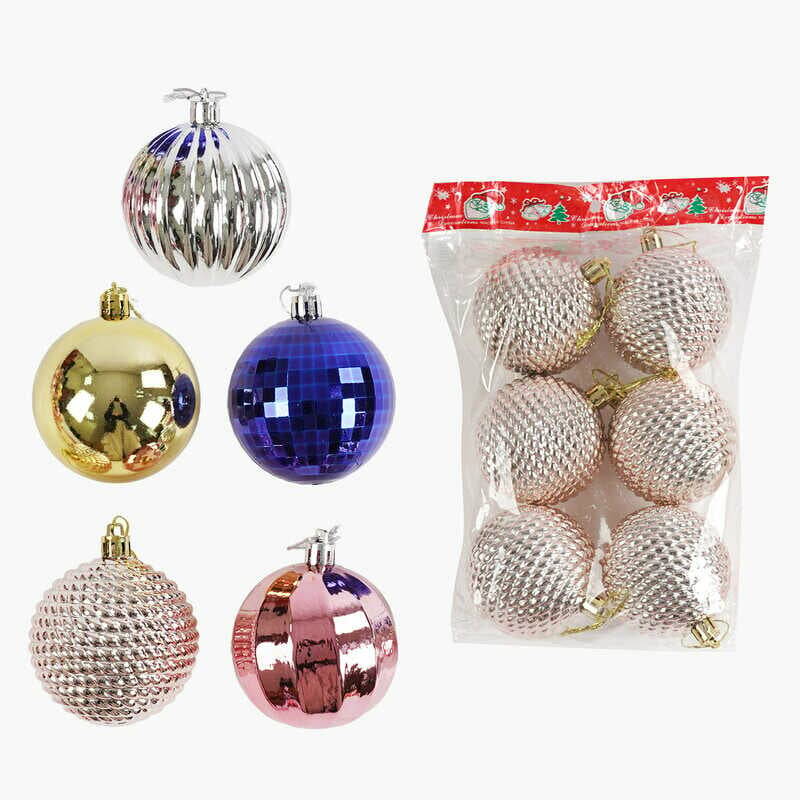 Новорічні прикраси C 67742 (100) 5 видів, кульки, 6 штук, D=7 см, у пакеті, ВИДАЄТЬСЯ МІКС ВИДІВ