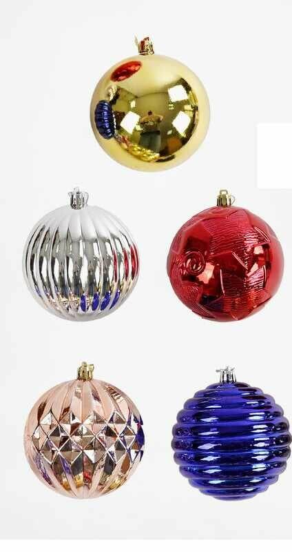 Новорічні прикраси C 67744 (24) 5 видів, кульки, 5 штук, D=11 см, ВИДАЄТЬСЯ МІКС ВИДІВ