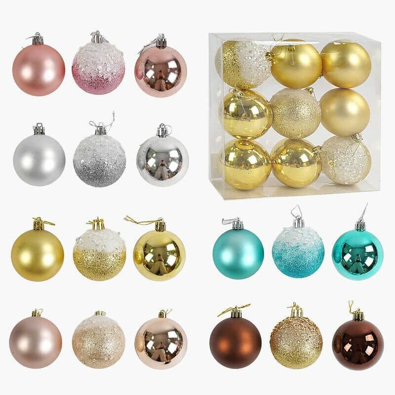 Новорічні прикраси C 67747 (32) 9 штук, кульки, D = 7 см, ВИДАЄТЬСЯ ТІЛЬКИ МІКС ВИДІВ, у слюді