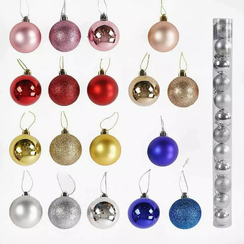 Новорічні прикраси C 67751 (96) 6 видів, 12 штук, кульки, D=5 см, у слюді, ВИДАЄТЬСЯ МІКС ВИДІВ