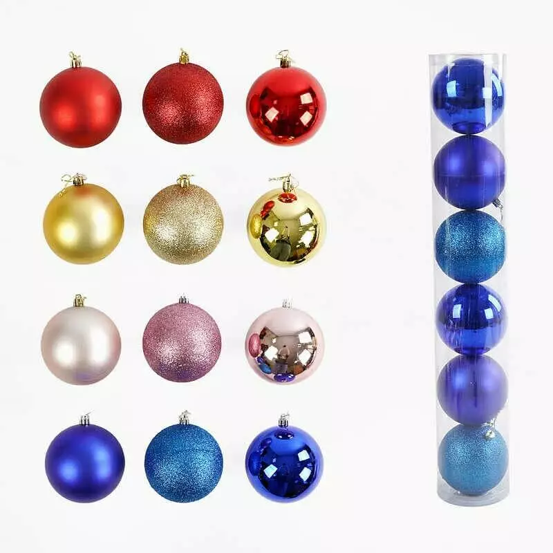 Новорічні прикраси C 67756 (24) 4 види, 6 штук, кульки, D= 9 см, у слюді, ВИДАЄТЬСЯ МІКС ВИДІВ