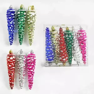 Новорічні прикраси D 35032 (180) 6 шт., ялинка, висота 14,5 см, в слюді