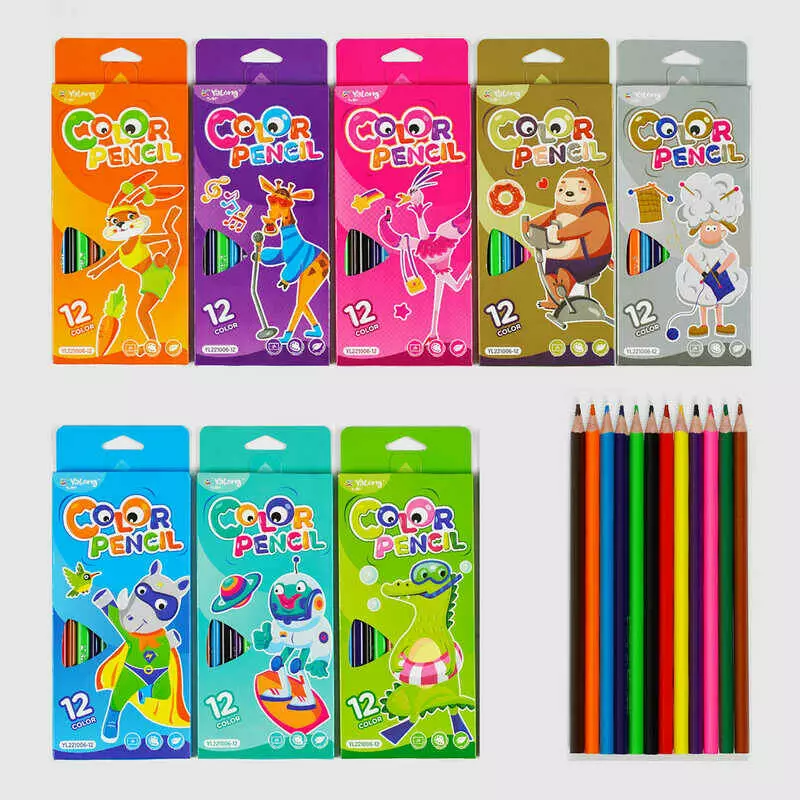 Олівці C 61992 (240) 8 видів, 12 шт в упаковці, 12 кольорів, в коробці, ВИДАЄТЬСЯ ТІЛЬКИ МІКС ВИДІВ