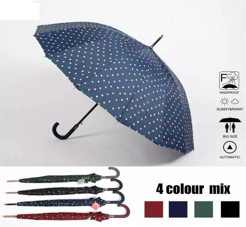 Парасолька C 68638 (48) напівавтомат, d = 115 см, довжина 93 см, 16 спиць, в пакеті, ВИДАЄТЬСЯ МІКС ВИДІВ