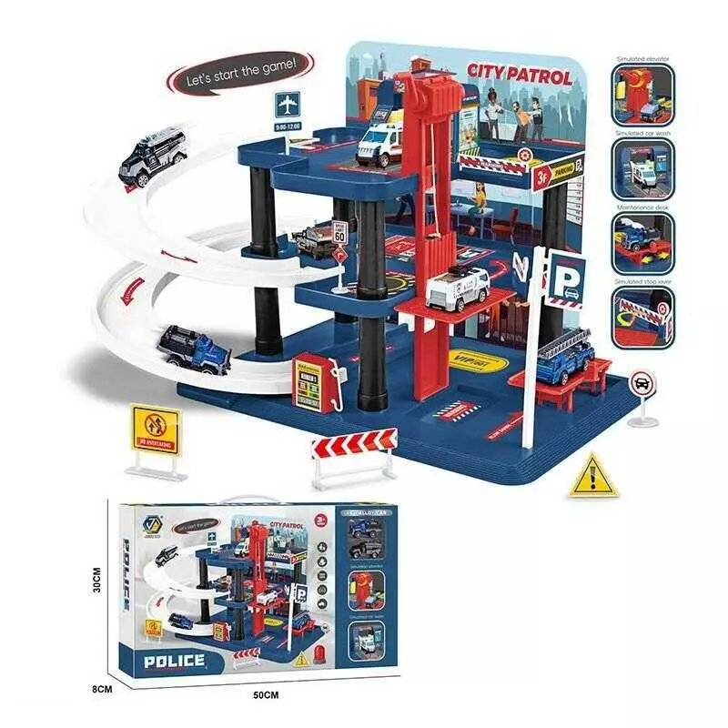 Трек 652 J39 (16/2) дворівневий, масштаб - 1:64, механічний ліфт, спіральні траси, 2 металопластикові машинки, аксесуари, наліпки, в коробці