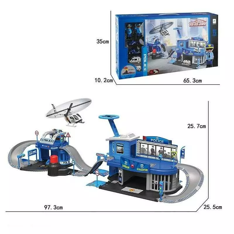 Трек 660 A-200 (6) 73 деталі, запускач для машинок, металопластикові машинки, фігурки поліціянтів, наліпки, в коробці