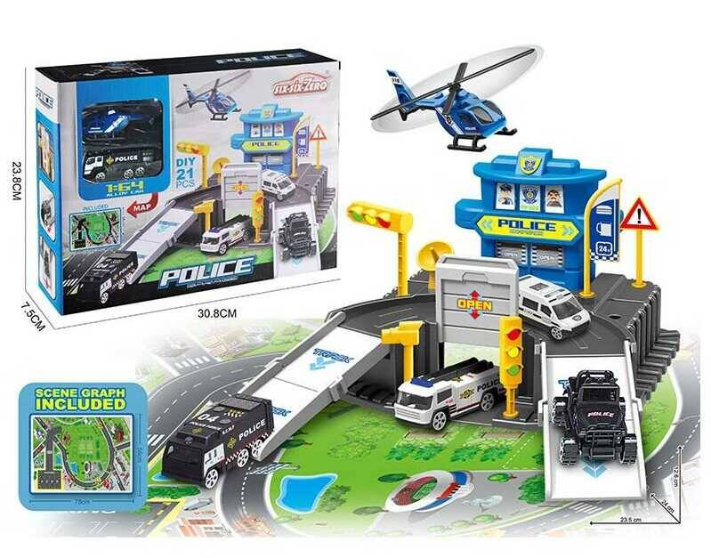 Парковка 660 S-05 (48/2) "Поліція", 21 елемент, ігрове поле, машинка, гелікоптер, у коробці
