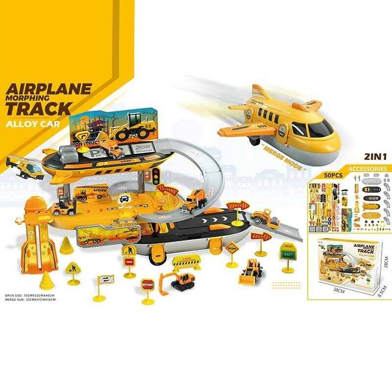 Парковка 6671 (36/2) 50 елементів, літак, 2в1, металопластикова машинка, дорожні знаки, в коробці