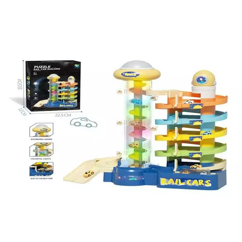 Трек 9823 (24/2) мелодія, підсвічування, автоматичний підіймач, 5 машинок, розбірна конструкція, рухливі елементи, в коробці