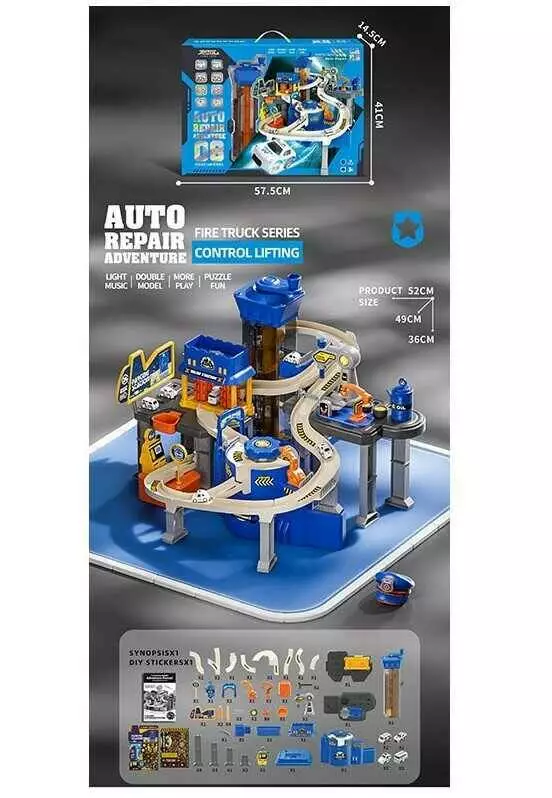 Трек JP 588-12 (6) мелодія підсвічування, 8 машинок, автоматичний підіймач, автомийка, в коробці