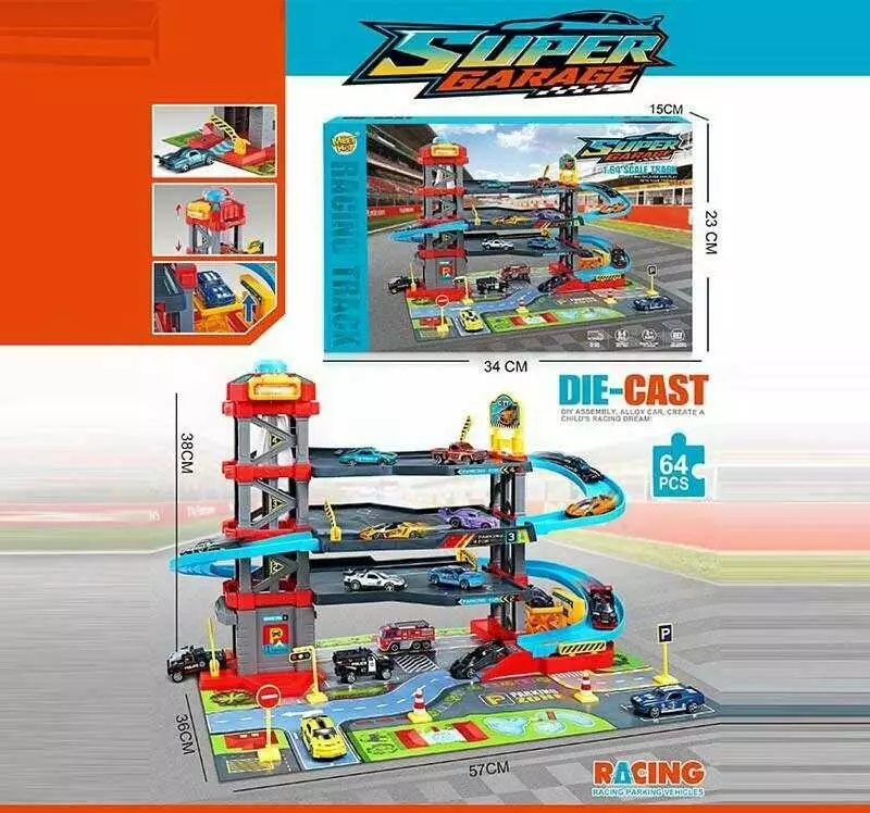 Трек MH 164 A (6) 64 елементи, металопластикові машинки, звуки, підсвічування, механічний підіймач, в коробці