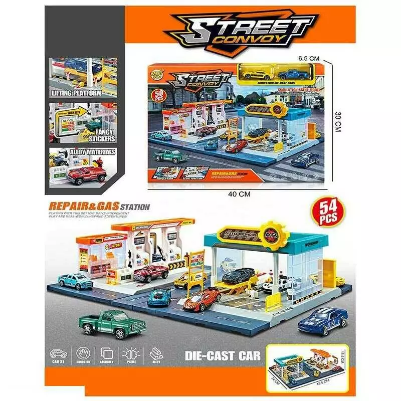 Парковка MH 180 (24/2) 3 в 1, 54 елементи, наліпки, 2 машинки, механічний запускач, в коробці
