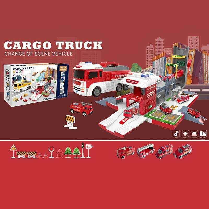 Парковка SJ 666 A (6) довжина 40 см, підсвічування, звук транспорту, мелодії, трек, 4 металопластикові машинки, дорожні знаки, ялинка, в коробці