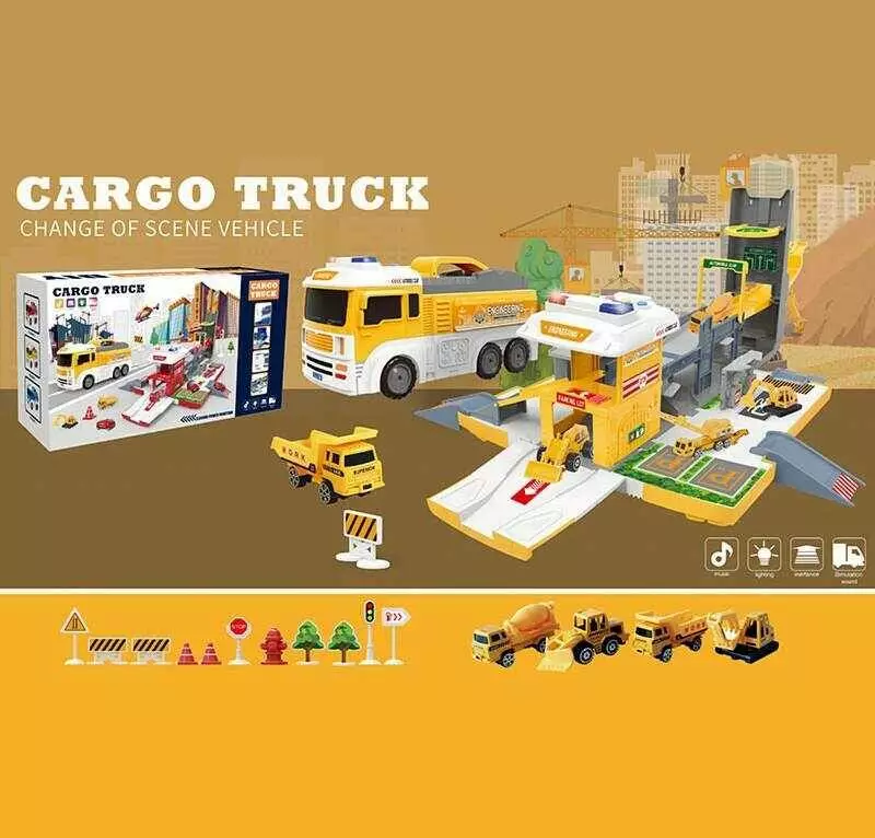 Парковка SJ 666 B (6) довжина 40 см, підсвічування, звук транспорту, мелодії, трек, 4 металопластикові машинки, дорожні знаки, ялинка, в коробці