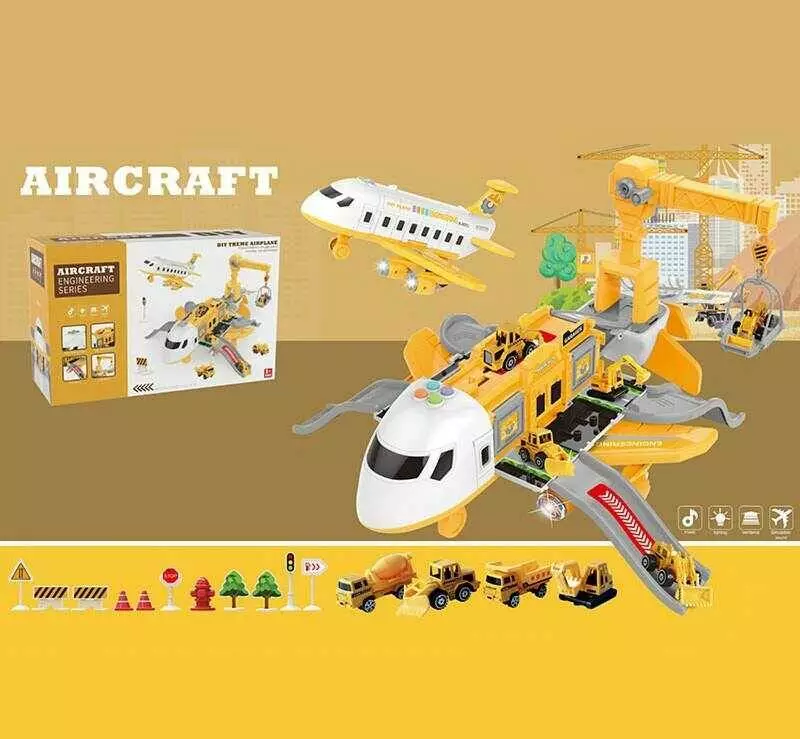 Трек SJ 670 B (6) літак, інерція, 4 металопластикові машинки, звуки, підсвічування, звуки, мелодії, механічний кран, в коробці