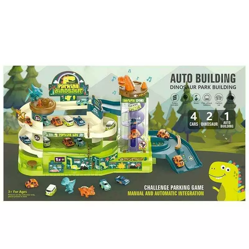 Трек T 103-55 A (6) парковка, підсвічування, звукові ефекти, 3 поверхи, 4 машинки, ліфт, 2 режими роботи, барикади, динозаврики, в коробці