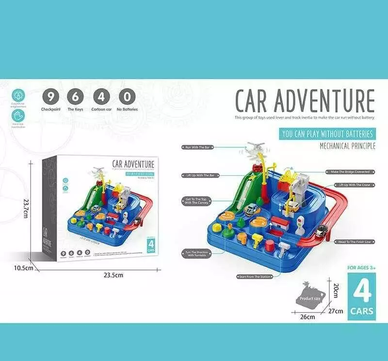 Трек T 801 A (20) 26х27х20, мех. принцип, 6 механізмів для гри, важелі, підйомники, розвод. міст, вертоліт із магнітом, світлофор, 2 ялинки, в коробці
