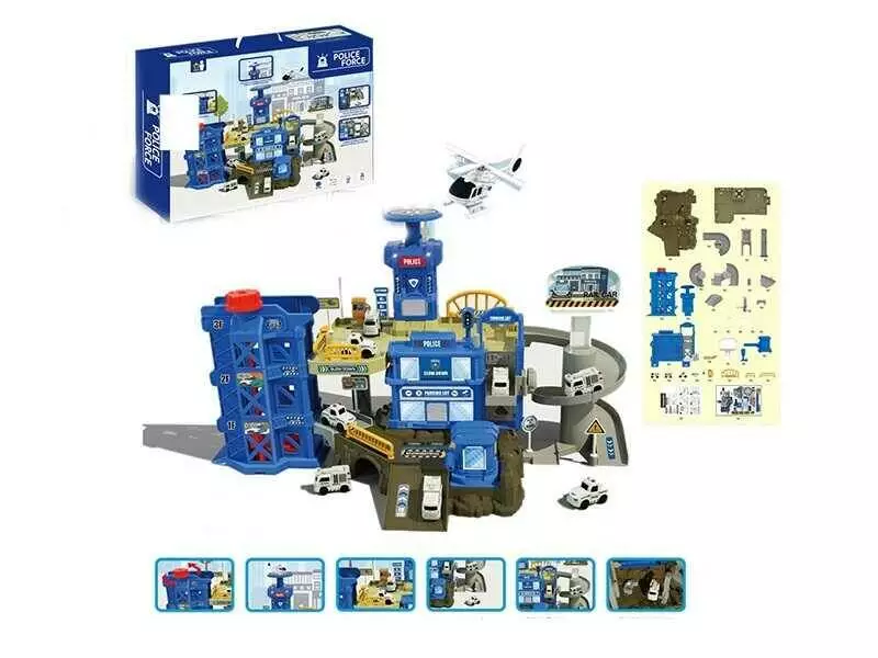 Трек ZX 065 A (16) “Поліцейський відділок”, звук, підсвічування, 3 машинки, механічний підйомник, в коробці