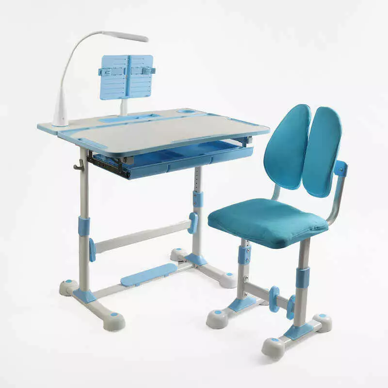 Парта дитяча зі стільчиком S-71400 (1) колір синій, регульована висота та нахил, з лампою, в коробці